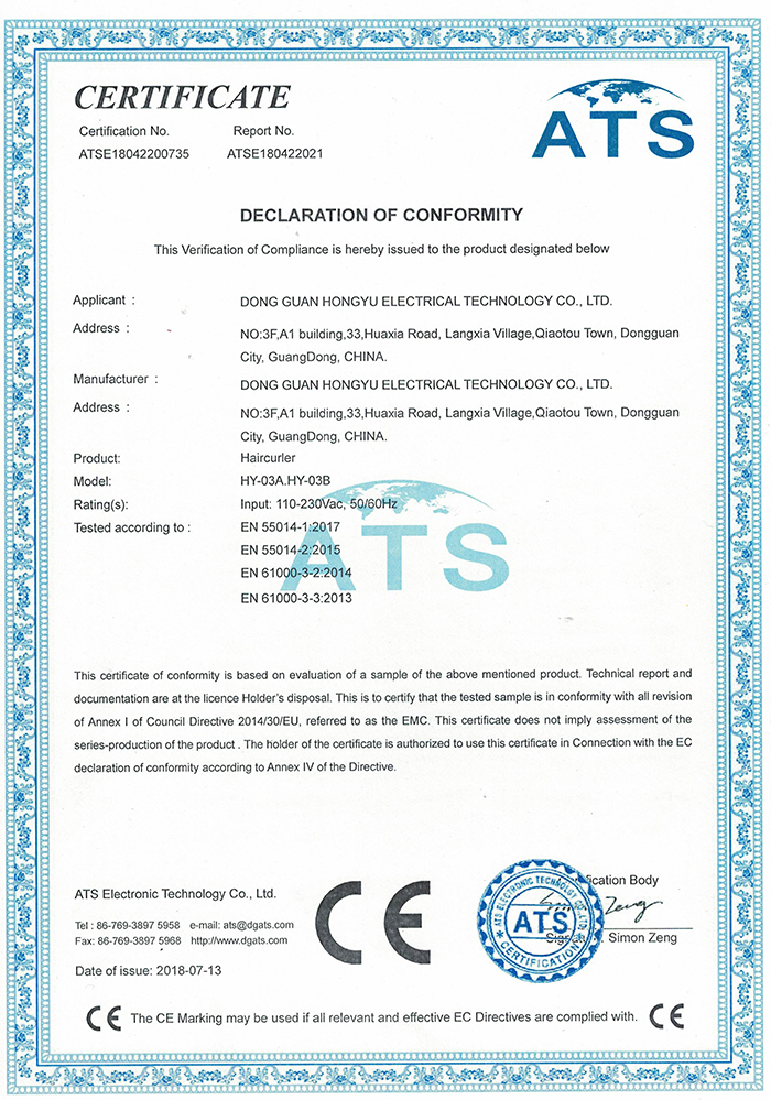 Location: Home ->  Honor ->  HY-03-CE certificate-EMC