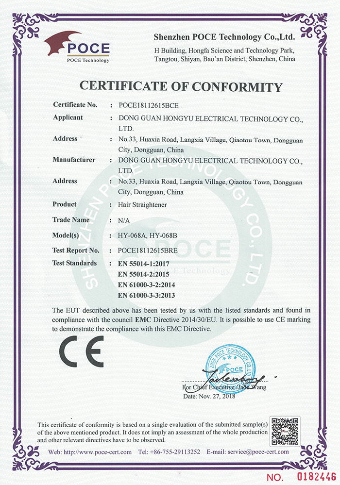 Location: Home ->  Honor ->  HY-068-CE-Certificate EMC